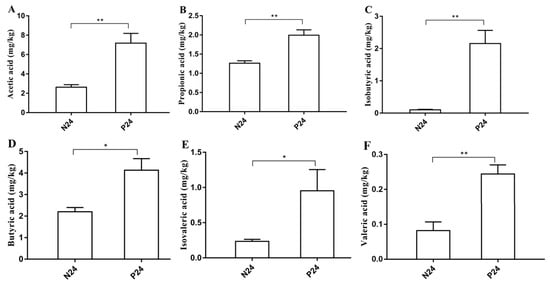 3.5. The Effect of POSH1 on the Composition of Fermentation Products of Intestinal Flora