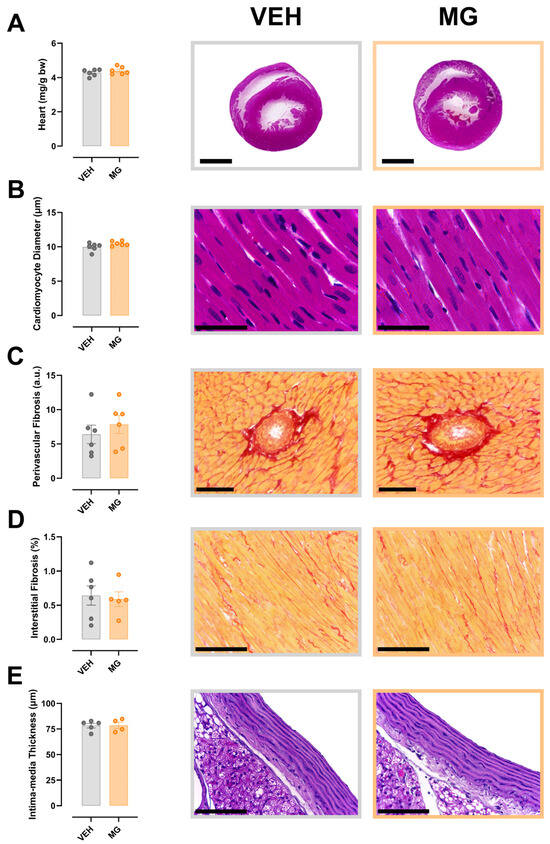 2.4.1. Measurement of Cardiomyocyte Diameter and Intima–Media Thickness in Aortas