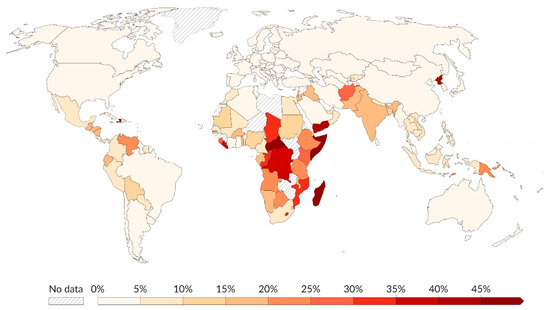 After years of decline, there has been an increase in global hunger since 2014 [23]. Globally, the percentage of undernourished individuals rose to 10.6% in 2015 and, subsequently, 11% in 2016 [23]. The FAO estimates that 821 million people worldwide, or almost one in nine people, were undernourished in 2017 [23]. The 2018 food insecurity statistics by the FAO also report that up to 60% of hungry people worldwide are women, and up to 5 million children below the age of 5 die from malnutrition-related causes annually [24]. The rise in food insecurity suggests that the Sustainable Development Goal (SDG) aim of ending hunger by 2030 may not be met [24].