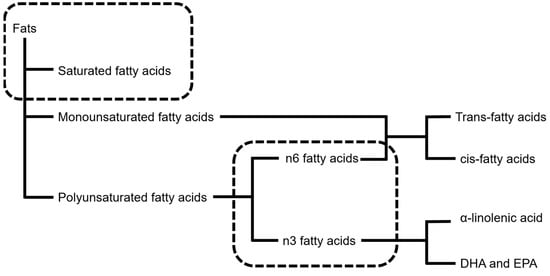 Fats (recommended amount) described in Japanese DRI. The fats enclosed by the dotted rectangle are regulated in the Japanese DRI.