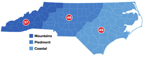 Teachers’ participation (n = 134; 34 did not report location) by North Carolina regions participating in the survey regarding their experiences with food-based learning in Head Start.
