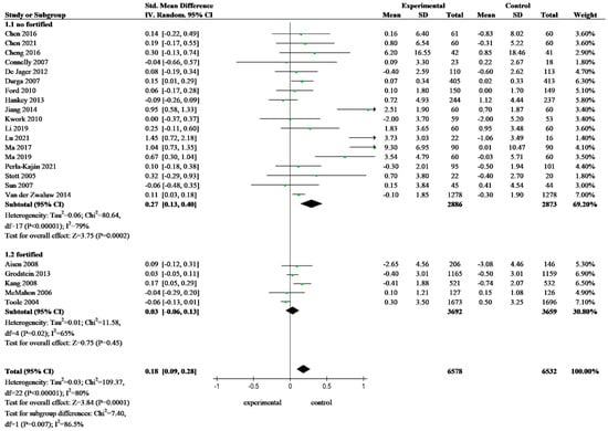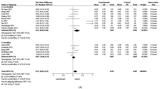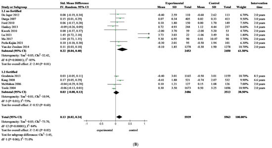 APA StyleZhang, L., Chen, X., Chen, Y., Yan, J., Huang, G., & Li, W. (2024). A Comparative Study Evaluating the Effectiveness of Folate-Based B Vitamin Intervention on Cognitive Function of Older Adults under Mandatory Folic Acid Fortification Policy: A Systematic Review and Meta-Analysis of Randomized Controlled Trials. Nutrients, 16(14), 2199. https://doi.org/10.3390/nu16142199