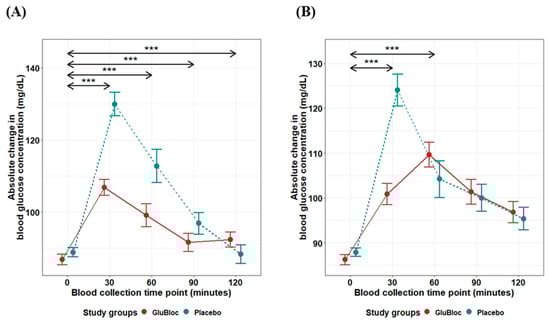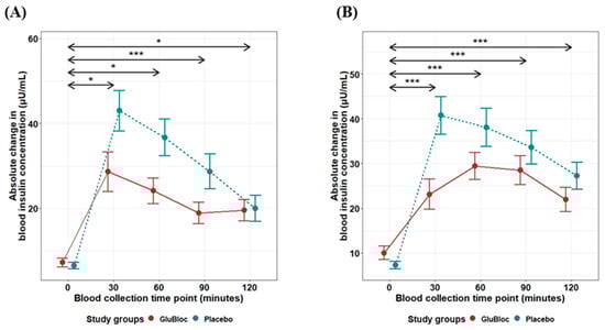Chicago/Turabian StyleVenugopal, Giriprasad, Rishikesh Dash, Siwani Agrawal, Sayantan Ray, Prasanta Kumar Sahoo, and Balamurugan Ramadass. 2024. "A Novel Nutraceutical Supplement Lowers Postprandial Glucose and Insulin Levels upon a Carbohydrate-Rich Meal or Sucrose Drink Intake in Healthy Individuals—A Randomized, Placebo-Controlled, Crossover Feeding Study" Nutrients 16, no. 14: 2237. https://doi.org/10.3390/nu16142237