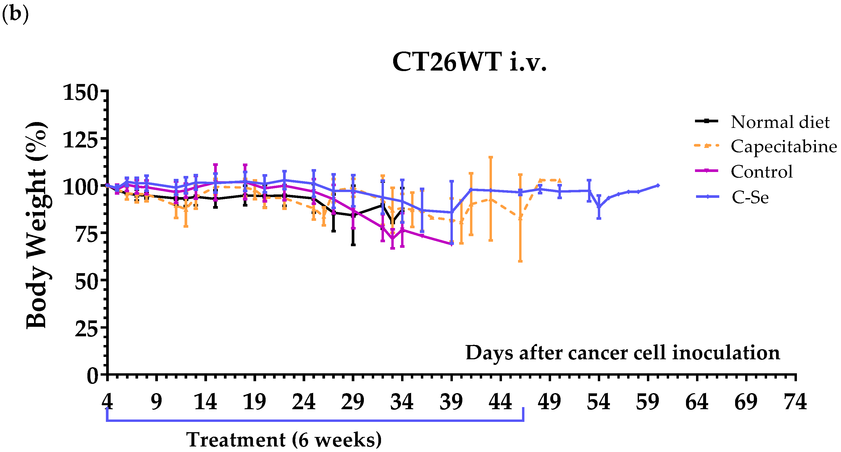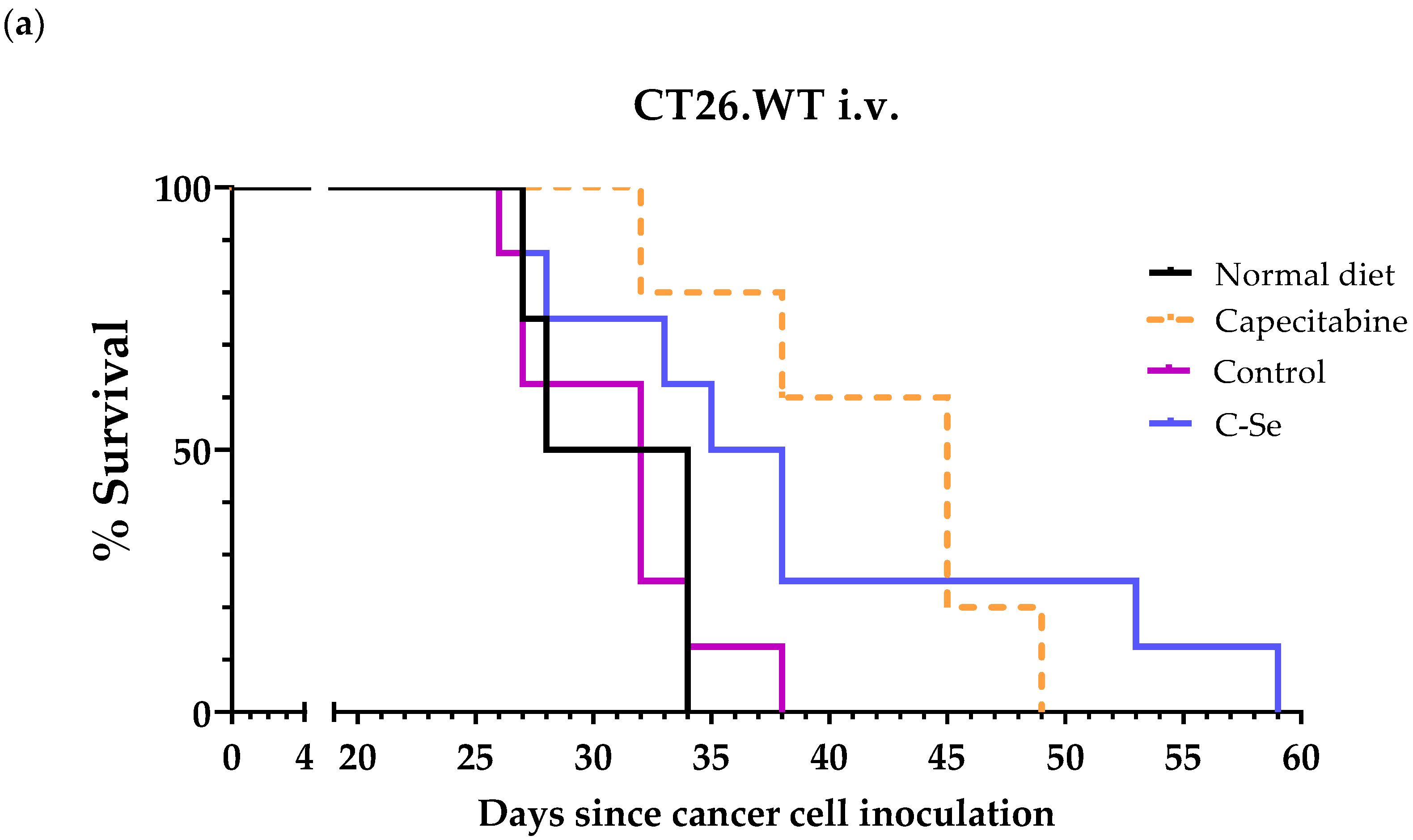3.2. A Diet Lacking Selenium Induces Anticancer Activity in Mice with Metastasic Colon Cancer