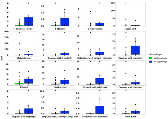 3.6. Microbiome and Volatilome Characteristics According to Hyperphagia and Dietary Intakes