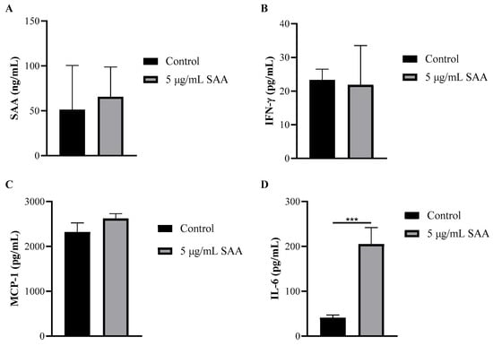 Using the cell culture supernatant, the concentrations of inflammatory markers were evaluated after SAA stimulation using the ELISA method (