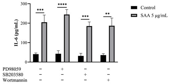 Figure 4). The concentration of IL-6 was also evaluated when stimulated by SAA and by the inhibitors PD98059, SB203580 and wortmannin (
