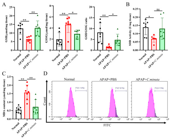 3.2. C. minuta Supplementation Relieved Oxidative Stress and Inflammatory Response
