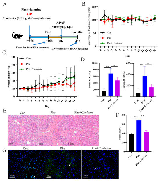 APA StyleYao, T., Fu, L., Wu, Y., & Li, L. (2024). Christensenella minuta Alleviates Acetaminophen-Induced Hepatotoxicity by Regulating Phenylalanine Metabolism. Nutrients, 16(14), 2314. https://doi.org/10.3390/nu16142314