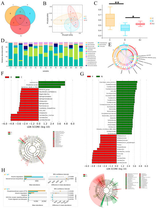 3.7. C. minuta Modulated the Gut Microbiota Disturbed by Phenylalanine