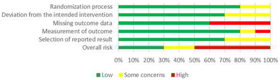 - Sterne, J.A.C.; Savović, J.; Page, M.J.; Elbers, R.G.; Blencowe, N.S.; Boutron, I.; Cates, C.J.; Cheng, H.-Y.; Corbett, M.S.; Eldridge, S.M.; et al. RoB 2: A revised tool for assessing risk of bias in randomised trials. BMJ 2019, 366, l4898. [Google Scholar] [CrossRef]