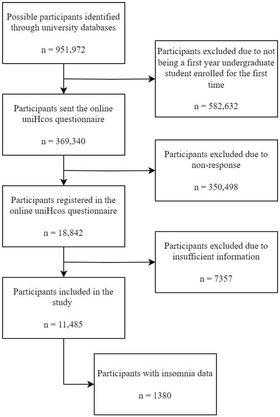 - Carrión-Pantoja, S.; Prados, G.; Chouchou, F.; Holguín, M.; Mendoza-Vinces, Á.; Expósito-Ruiz, M.; Fernández-Puerta, L. Insomnia symptoms, sleep hygiene, mental health, and academic performance in Spanish university students: A cross-sectional study. J. Clin. Med. 2022, 11, 1989. [Google Scholar] [CrossRef] [PubMed]