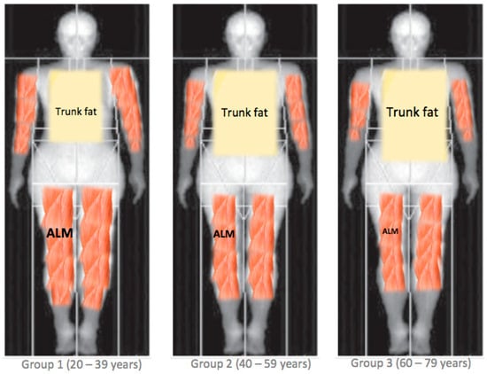 The proposed differences in body composition patterns between age groups. ALM = appendicular lean mass.