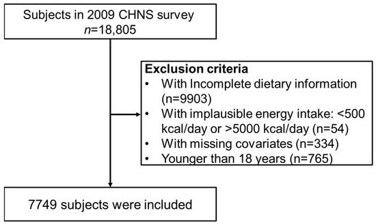 This study utilized openly accessible data from the CHNS. This study utilized a multi-stage random clustering method to gather comprehensive data on the socioeconomic status, healthcare utilization, dietary habits, and nutritional status of a consistent cohort over time. Finally, we selected approximately 7200 households, with a total population exceeding 30,000 individuals.