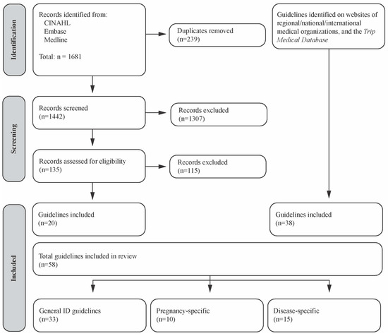 Figure 3. Recommended biomarkers for the diagnosis of NAID/IDA in the included general and pregnancy-specific guidelines [30,31,32,33,34,35,36,37,38,39,40,41,42,43,44,45,46,48,51,52,53,54,55,57,58,64,65,67,68,70,71,72,73,74,75,76,77,78,80,81,85,86,87].