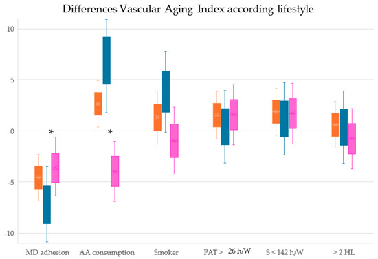 3.3. Correlation of Vascular Aging with Mediterranean Diet and Other Lifestyles