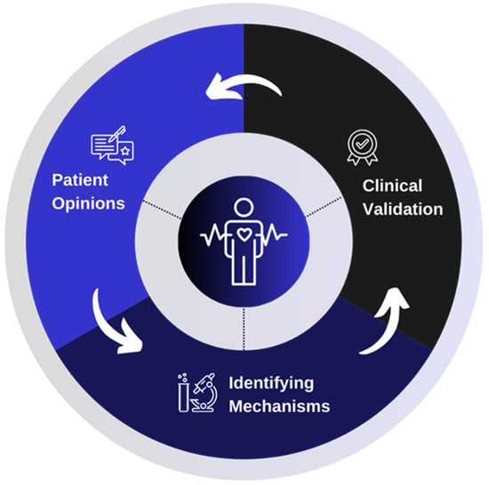 CIRCULAR patient and researcher collaboration model. Patients’ opinions are collected and form the base of research on mechanisms and clinical validation. After finalization of these phases, outcomes are given back to the patients. Hence, patients remain at the center of every stage of the model.