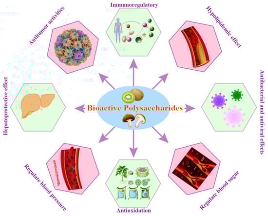 Diet is a cornerstone of human life and plays an essential role in determining health risks among varied populations. Consumption of food rich in dietary fibers (DFs) has been long recognized to exert an overall beneficial effect on human health and wellbeing, which is associated with the modulation of the gut microbiota composition and functionality and improvement of intestinal homeostasis by improving the mucus layer thicknesses, and the tight junction proteins, among other modulatory functions [1]. Polysaccharides, and more specifically, bioactive polysaccharides (BPs), for example, Lycium barbarum polysaccharides, Auricularia auricula polysaccharides, and Laminaria japonica polysaccharides, are key DF components that display a wide range of biological functions. The presence of BPs has attracted significant academic attention in the fields of biochemistry and medicine, indicating potential for broad advancements. Additionally, a growing corpus of research highlights that BPs demonstrate minimal toxicity and substantial effectiveness in combating human metabolic disorders [2].