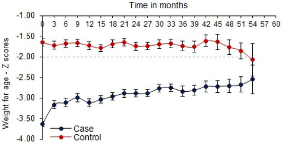 The study participants included the ‘intervention arm’ which consisted of SUW children aged 6–60 months, and the ‘reference arm’, which consisted of age-matched (±2 weeks) control children with normal WAZ (non-SUW), from the same demographic study area, whose parents gave informed written consent and were permanent residents of the study area. Children who migrated from the study area for more than six months were excluded from the study.