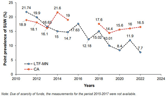 - The prevalence of S.U.W. was determined in 14 intervention villages and 22 control villages in every September, from 2011 to 2022.