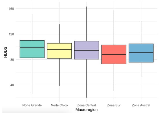 Household Dietary Diversity Score (HDDS) across Chilean macro-zones, 2019–2020.