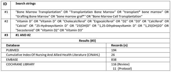 These questions were developed using the PICOS framework to ensure a structured and comprehensive approach: P (Population): patients undergoing hematopoietic stem cell transplantation; I (Intervention): vitamin D supplementation; C (Comparison): vitamin D supplementation versus different interventions and/or no interventions; O (Outcomes): identification of optimal vitamin D levels in patients undergoing HSCT and supplementation protocols and determination of any correlation between low vitamin D levels and GvHD; and S (Study Design): primary studies.