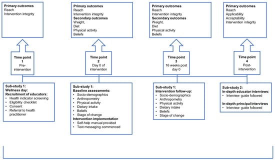 Hoosen, F.; Faber, M.; Nel, J.H.; Steyn, N.P.; Senekal, M. Feasibility Testing of the Health4LIFE Weight Loss Intervention for Primary School Educators Living with Overweight/Obesity Employed at Public Schools in Low-Income Settings in Cape Town and South Africa: A Mixed Methods Study. Nutrients 2024, 16, 3062. https://doi.org/10.3390/nu16183062