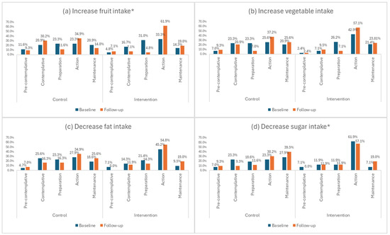 | Sugar added to food/day | 1.0 (0.0–4.2) | 1.5 (0.0–6.2) | 0.4 (0.0–8.0) | 0.8 (0.0–8.0) | −0.2 (−4.2–6.0) | −0.3 (−3.4–8.0) p < 0.01 2 Within group |