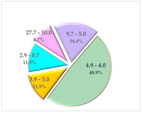 Regarding the total of 92 publications analyzed, five of them [rate 5.43%] have been published in journals with an Impact Factor of between 27.7 and 12.2 (Figure 12).