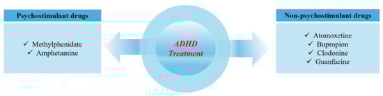 In summary, both psychostimulant and non-psychostimulant ADHD treatments ultimately function by modulating the levels and activity of dopamine and norepinephrine in the brain, particularly in areas associated with attention, impulse control, and hyperactivity [40]. For non-psychostimulant treatment, this includes atomoxetine, which inhibits the transport of norepinephrine [6].