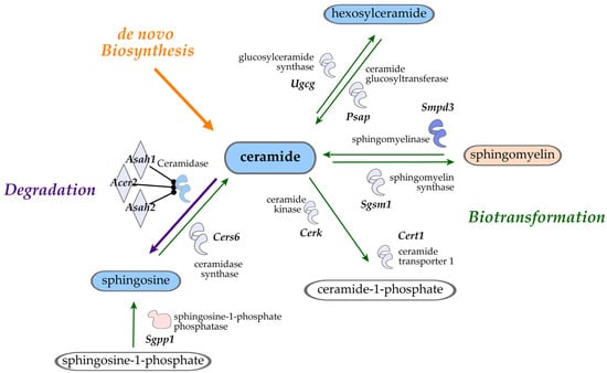 3.4. Sphingomyelin Pathway of Ceramide Biotransformation