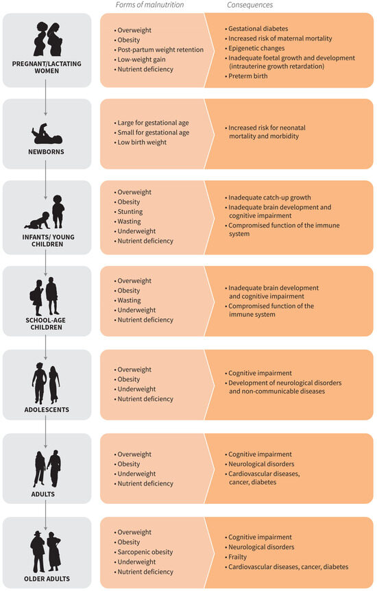 Forms and consequences of malnutrition over the life course (FAO 2023a).