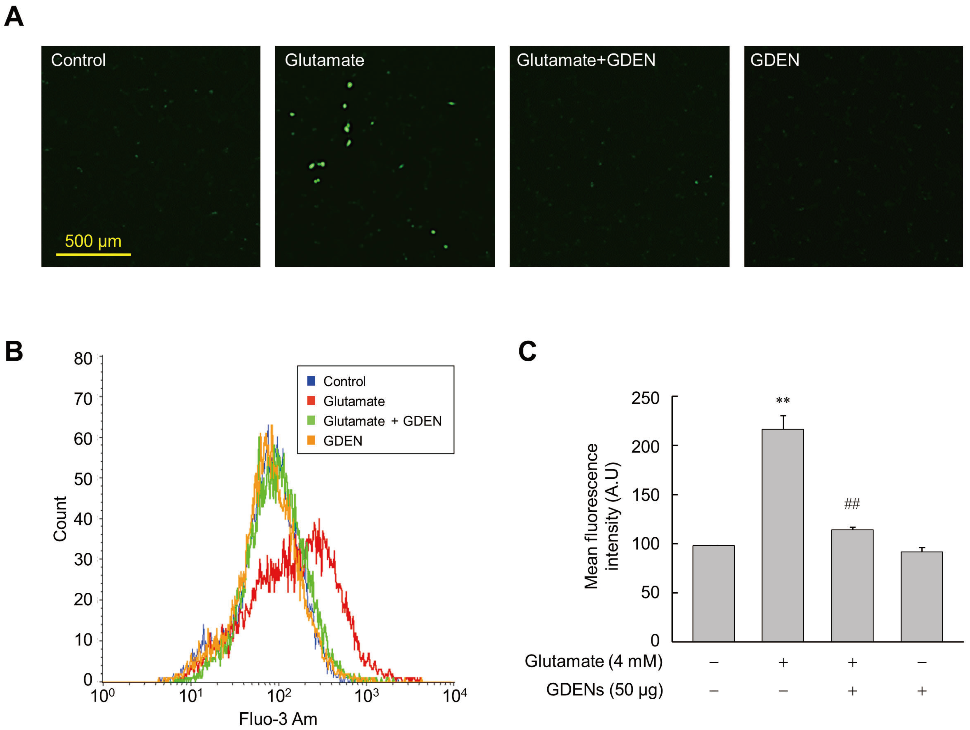 3.3. GDENs Inhibit Glutamate-Induced Calcium Influx