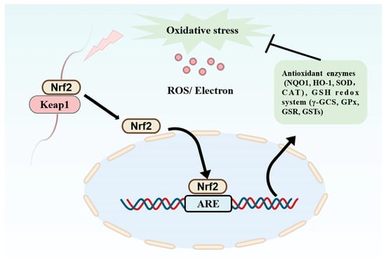 Redox imbalance produces reactive oxygen species. However, excessive production of reactive oxygen species or insufficient scavenging capacity may lead to accumulation of oxidative stress, which in turn triggers inflammation, cellular damage, tissue senescence, and decreased organ function [56]. Studies have shown that natural antioxidants maintain cell health by neutralizing harmful free radicals. Furthermore, PDBPs are a good source of natural antioxidants, which can neutralize excess free radicals and stabilize their electrons, thus protecting cells from oxidative damage. They are also beneficial for preventing or treating oxidative stress-related sub-health or disease states [57]. The Keap1/Nrf2 signaling pathway has attracted much attention in studies of the antioxidant mechanisms of PDBPs (Figure 3). Currently, PDBPs are of great interest because of their high safety, good absorption, and wide array of sources. As shown in Table 2, bioactive protein hydrolysates or peptides have been obtained from different plant sources, such as seeds, nuts, leaves, and their plant by-products.