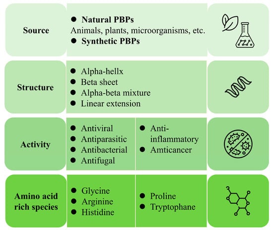 The complex biological structure and diverse functions of peptides are mainly determined by the number, composition, and arrangement of amino acids and the spatial structure of peptide chains. As shown in Table 3, the structure–activity relationship of PDBPs extracted and isolated from plants were identified.