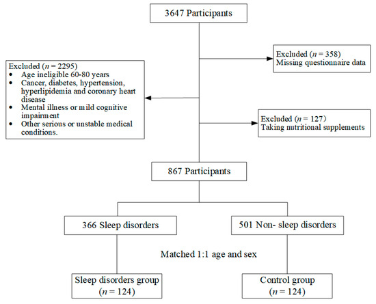 Cheng, C.; Chen, X.; Zhang, L.; Wang, Z.; Duan, H.; Wu, Q.; Yan, R.; Wang, D.; Li, Z.; He, R.; et al. A Risk Correlative Model for Sleep Disorders in Chinese Older Adults Based on Blood Micronutrient Levels: A Matched Case-Control Study. Nutrients 2024, 16, 3306. https://doi.org/10.3390/nu16193306