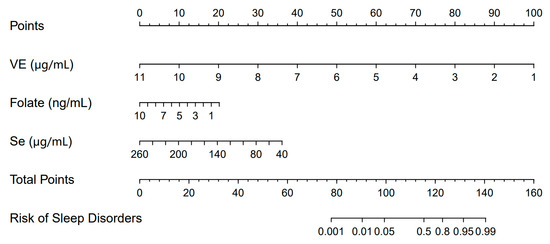 3.6. Nomogram Analysis of Micronutrients with Sleep Disorders