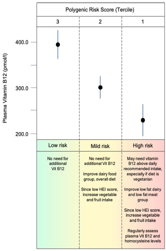 - Fuzo, C.A.; da Veiga Ued, F.; Moco, S.; Cominetti, O.; Métairon, S.; Pruvost, S.; Charpagne, A.; Carayol, J.; Torrieri, R.; Silva, W.A.; et al. Contribution of genetic ancestry and polygenic risk score in meeting vitamin B12 needs in healthy Brazilian children and adolescents. Sci. Rep. 2021, 11, 11992. [Google Scholar] [CrossRef]