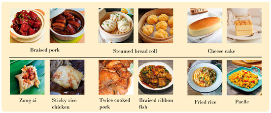 At present, scant research has been undertaken on lightweight food-image recognition. Lightweight Convolutional Neural Network (CNN) was initially employed for food-image identification [10,14,15,16]. The primary challenge is that the traditional convolutional model is not capable of extracting long-range information from food images due to the dispersed arrangement of components. To gather more long-range features, a deeper CNN network is necessary, thus preventing the achievement of a lightweight model. As Figure 1 highlights, food images exhibit the characteristics of small inter-category differences and large intra-category differences. Key features in these images often rely on ingredient information scattered throughout the image. Moreover, the same component in the same dish can display different characteristics in terms of size, form, and dispersion based on the means of cooking, such as the two braised pork images in Figure 1. Hence, it is imperative to precisely capture the global features that represent distant correlations between these disparate food ingredients in order to identify the dish effectively. Vision Transformer (ViT) is adept at capturing global information and utilizes an attention strategy to identify aspects from various locations that are dependent on the input data. Unfortunately, this necessitates considerable computational expenses, and the training can be arduous. CNN focuses on modeling local relationships and has strong prior inductive biases. Sheng [17] tried to combine the local feature extraction ability of CNN and the global feature expression ability of ViT, but the parameters and calculation amount of the model are still quite large.