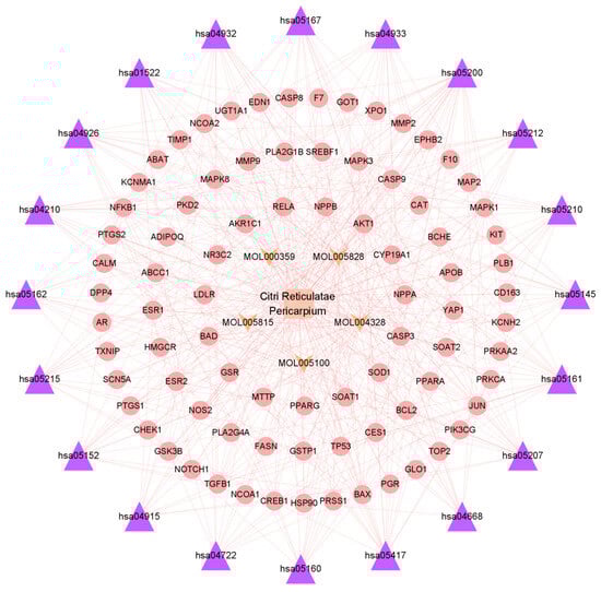 Bioactive compound–target–pathway network of Citri Reticulatae Pericarpium.