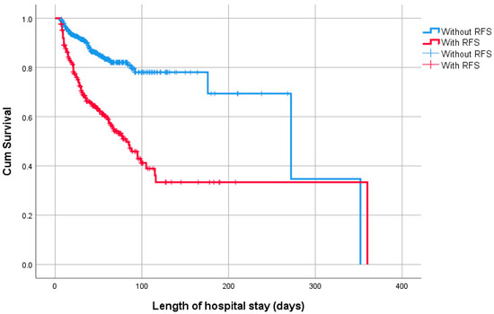 Kaplan–Meier curves showing the association between RFS and survival among infants aged < 32 gestational weeks, log-rank test, p < 0.001.