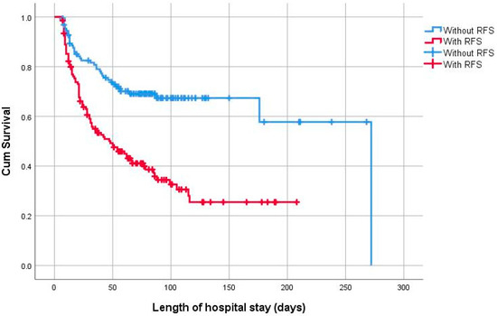 Figure 3 shows the Kaplan–Meier curves of the association between RFS and survival among all infants (log-rank test, p < 0.001). The multivariate Cox regression curve adjusted for significant potential confounders showed a significant association between RFS and survival. Moreover, the hazard ratios (HRs) for death in infants with RFS increased by 1.74-fold (95% CI: 1.37–2.21) than those in infants without RFS (Table 4).