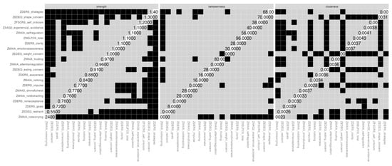 To explore the relative importance of the nodes in the network, a series of centrality indices were considered (Figure 2): betweenness—the number of shortest paths passing through a focal node; closeness—the inverse of the sum of the shortest path lengths of a focal node; strength—the sum of the absolute values of the edge weights of a focal node; and expected influence—an index of centrality proxy to strength in which negative edges are also accounted for [56].