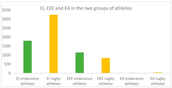 Comparison of average EI, EEE, and EA levels in the two groups of athletes.