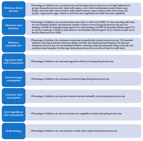 IYC complementary feeding indicators for children 6–23 months of age [4].