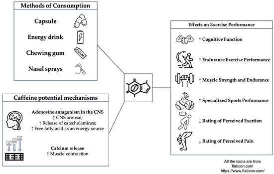 - Guest, N.S.; VanDusseldorp, T.A.; Nelson, M.T.; Grgic, J.; Schoenfeld, B.J.; Jenkins, N.D.M.; Arent, S.M.; Antonio, J.; Stout, J.R.; Trexler, E.T.; et al. International society of sports nutrition position stand: Caffeine and exercise performance. J. Int. Soc. Sports Nutr. 2021, 18, 1. [Google Scholar] [CrossRef]