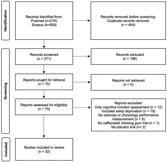 APA StyleYang, C.-C., Hsieh, M.-H., Ho, C.-C., Chang, Y.-H., & Shiu, Y.-J. (2024). Effects of Caffeinated Chewing Gum on Exercise Performance and Physiological Responses: A Systematic Review. Nutrients, 16(21), 3611. https://doi.org/10.3390/nu16213611
