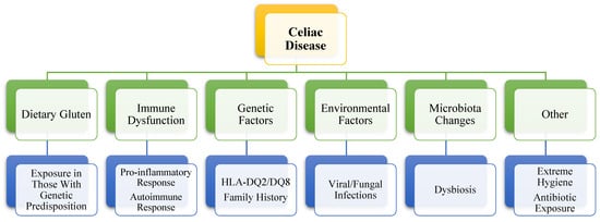 - Wagh, S.K.; Lammers, K.M.; Padul, M.V.; Rodriguez-Herrera, A.; Dodero, V.I. Celiac Disease and Possible Dietary Interventions: From Enzymes and Probiotics to Postbiotics and Viruses. Int. J. Mol. Sci. 2022, 23, 11748. [Google Scholar] [CrossRef]