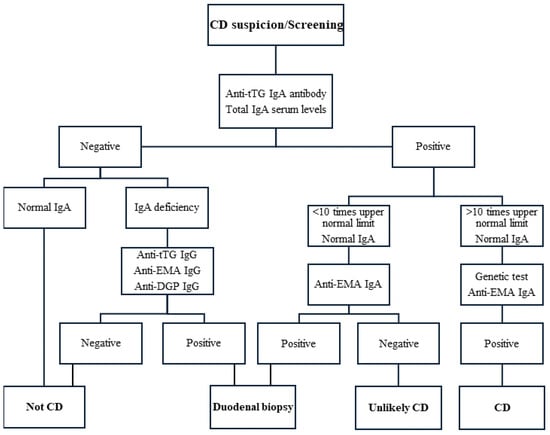 - Rubio-Tapia, A.; Hill, I.D.; Semrad, C.; Kelly, C.P.; Lebwohl, B. American College of Gastroenterology Guidelines Update: Diagnosis and Management of Celiac Disease. Am. J. Gastroenterol. 2023, 118, 59–76. [Google Scholar] [CrossRef] [PubMed]