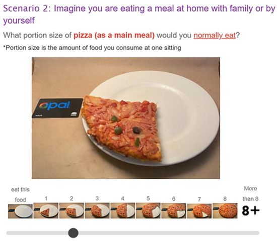 - Liu, Q.; Wang, L.; Guo, S.; Allman-Farinelli, M.; Rangan, A. Development and validation of an online tool to assess perceived portion size norms of discretionary foods. Eur. J. Clin. Nutr. 2023, 77, 815–822. [Google Scholar] [CrossRef]